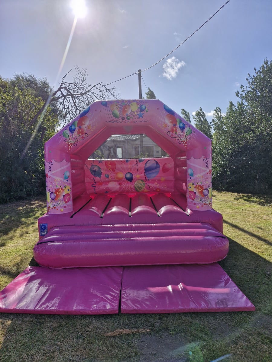 Each hire includes the pink bouncy castle, blower, safety mats, and full insurance. Optional extras include music, themed decorations, or bubble machines.